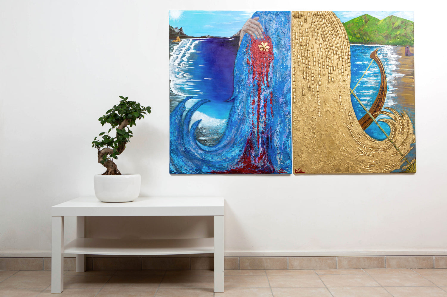 Opera d'arte creata in Italia, con cura, passione e amore per il presente e il futuro con tanto rispetto per il passato. L'artista vive in Italia precisamente nel suo cuore, sulle colline delle Marche. Nelle sue opere l'artista chiama a riflettere verso la vita e il mondo in cui viviamo. Utilizzando il colore ci invita a sognare e sperare in un mondo migliore. Utilizzando oltre ai materiali tradizionali per dipingere come acrilico su tela o carta e pannelli in legno, introduce anche materiali ricercati e preziosi come i metalli, la madreperla vetri colorati e specchi, per creare dipinti piccoli originali e grandi, arte per casa, arte per ufficio o ovunque fosse bisogno di un tocco di colore.